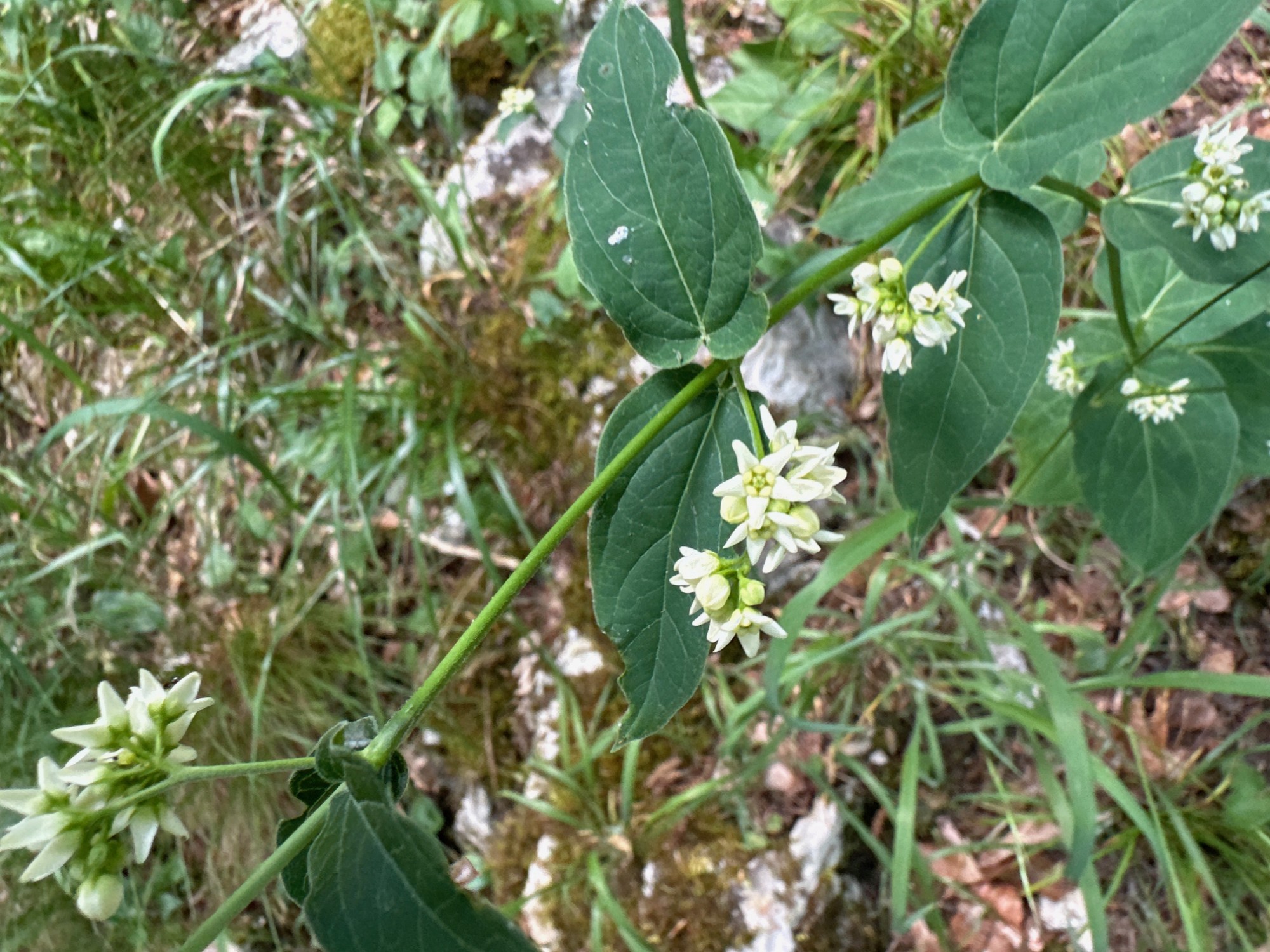 The white swallow-wort (Vincetoxicum hirundinaria) is native to cliffs and slopes, especially in calcareous soils.