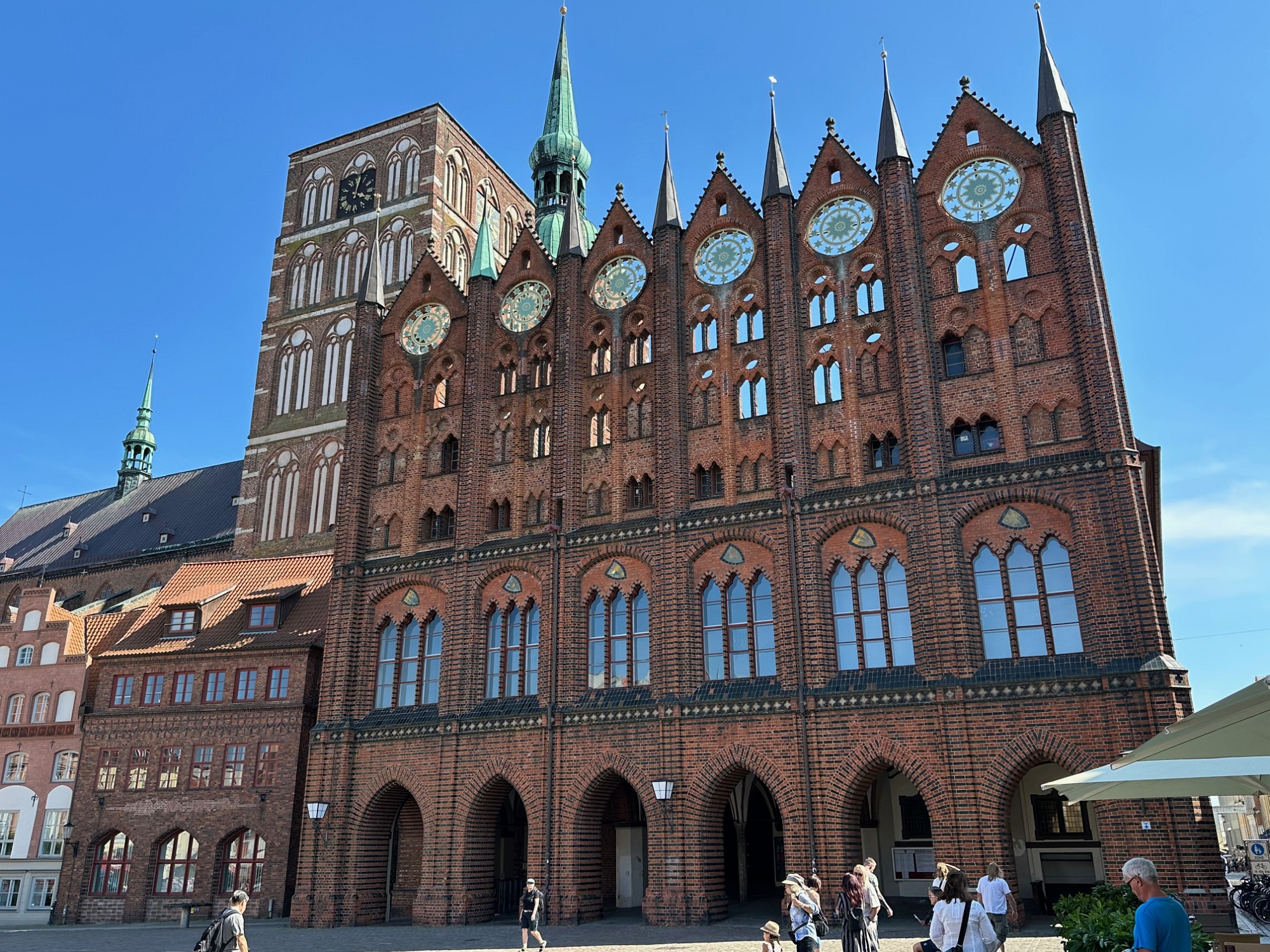 Alter Markt Square with the city hall and the St. Nicholas Church in the background. This city hall building from 1278 features a remarkable "show façade" that serves the sole purpose of displaying wealth of the city.