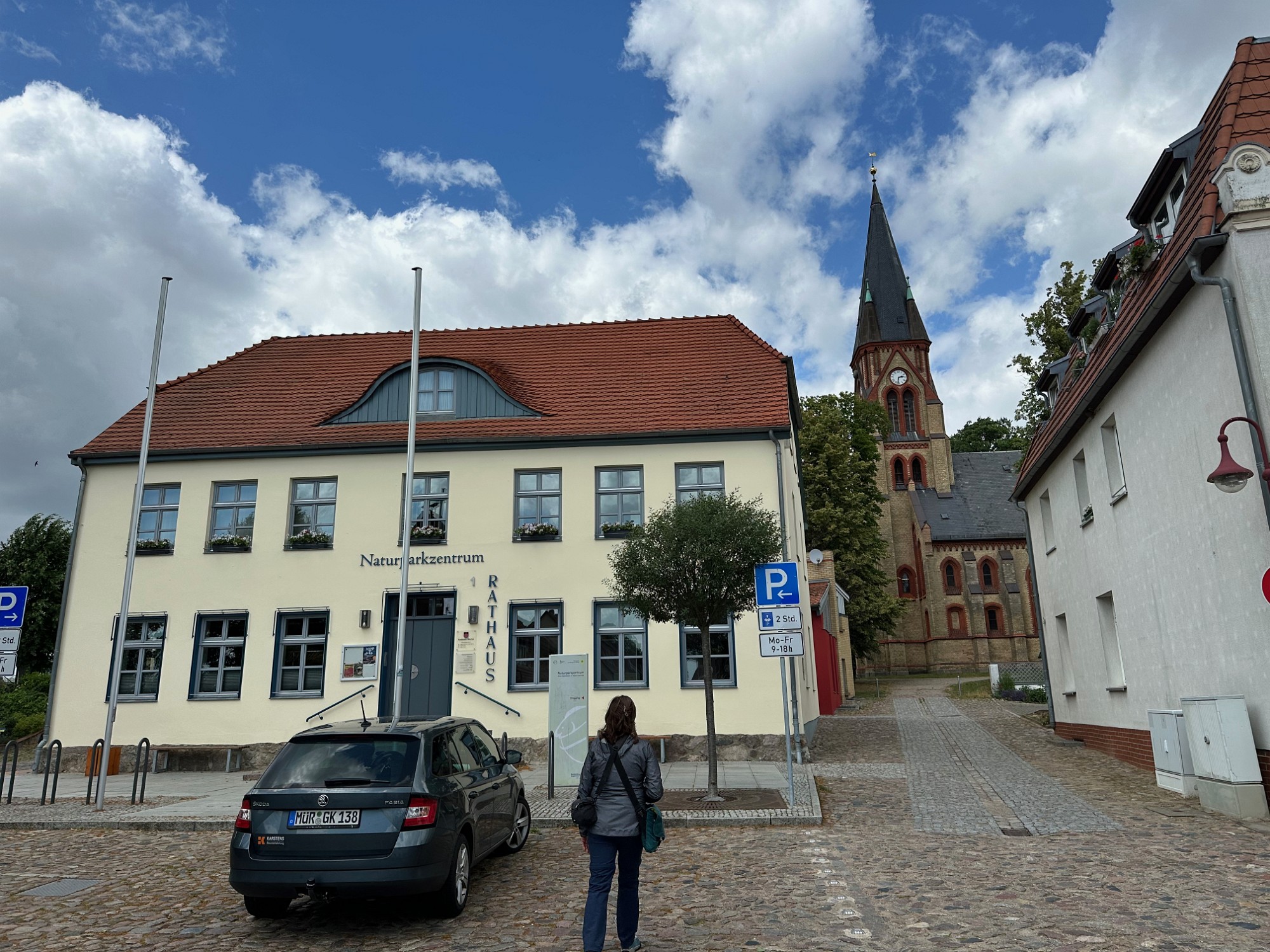 The town hall of Warin with the church in the background.