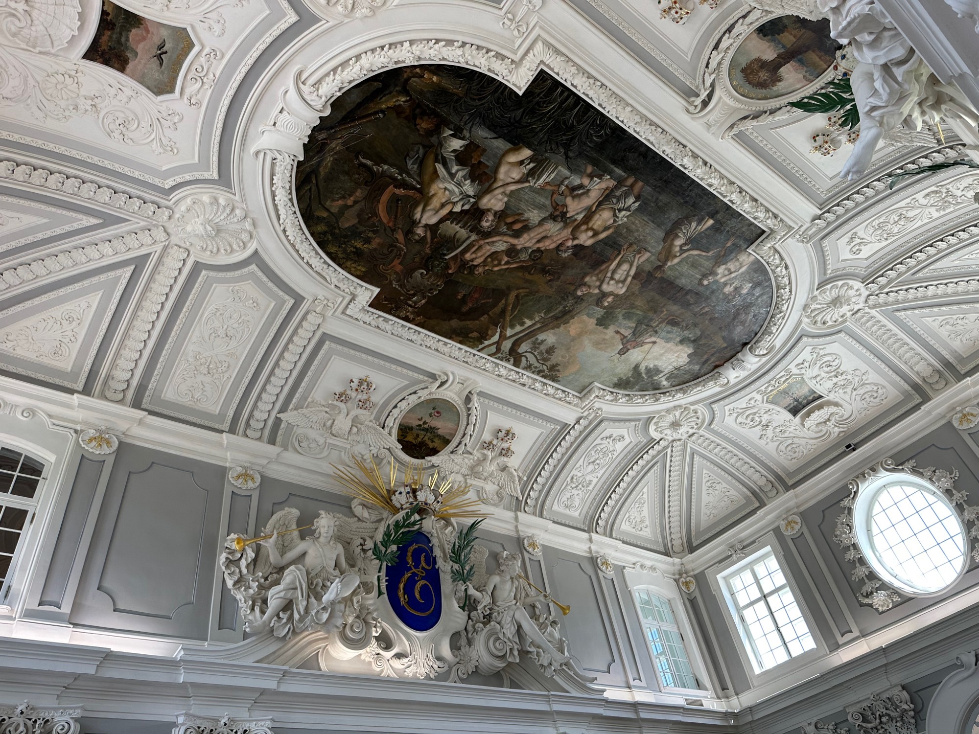 Stucco decoration with Catherine's initials in the great hall of the palace.
