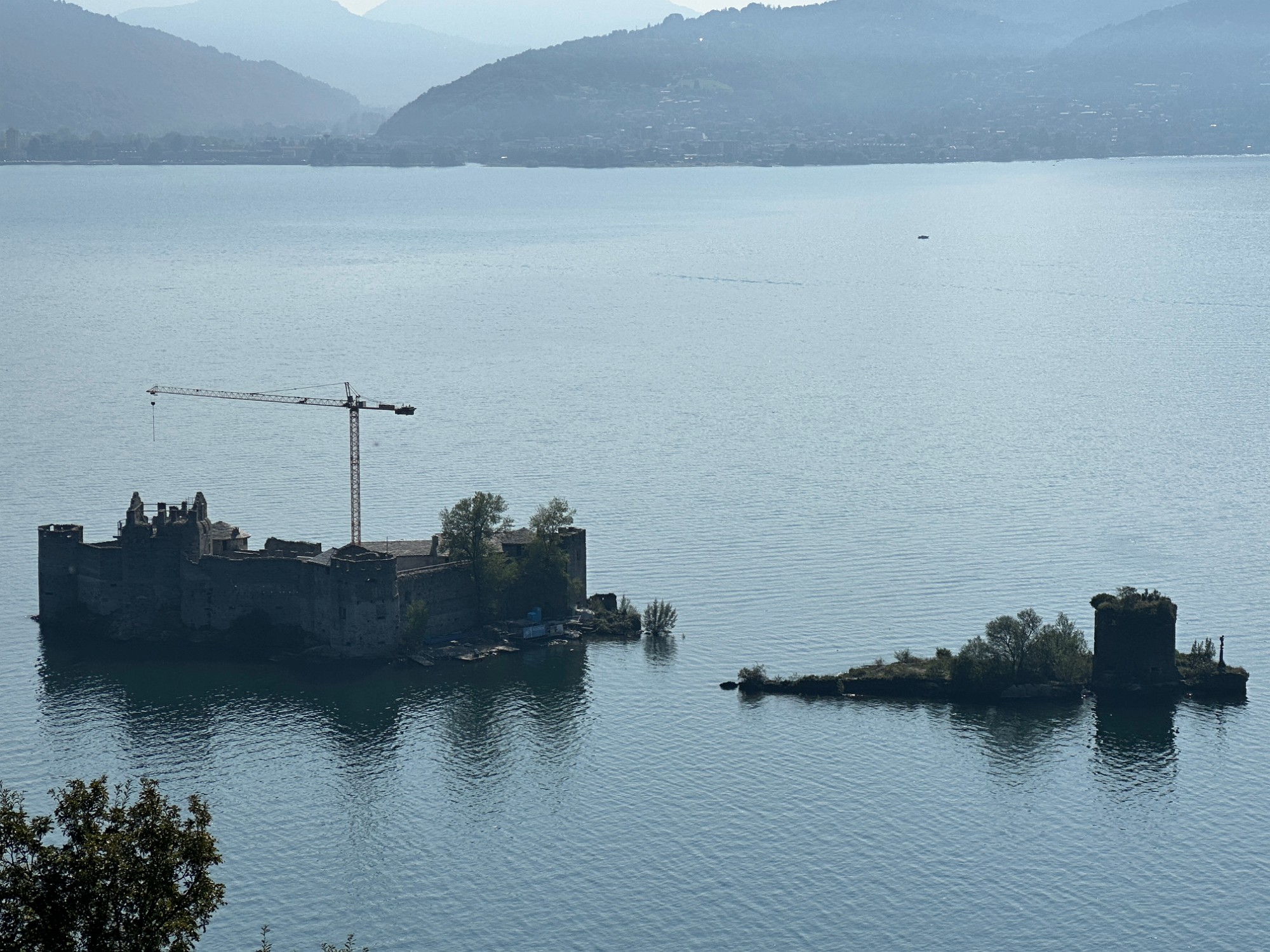 From the beautifully laid out lakefront promenade the view is enchanting over the lake, the islands of the Castles of Cannero, and the town of Luino on the nearby Lombard shore.
