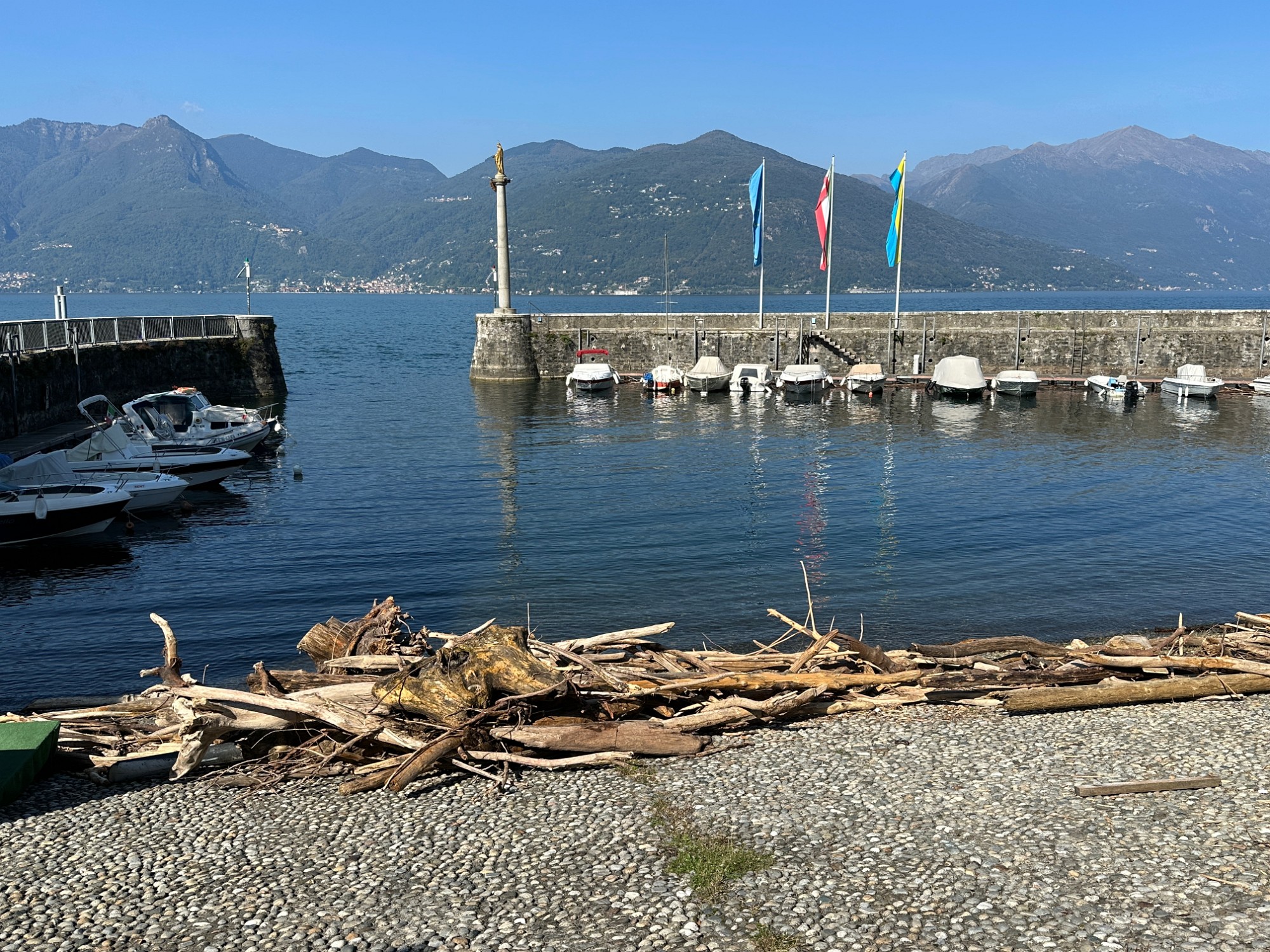 A lot of driftwood at the marina of Luino.