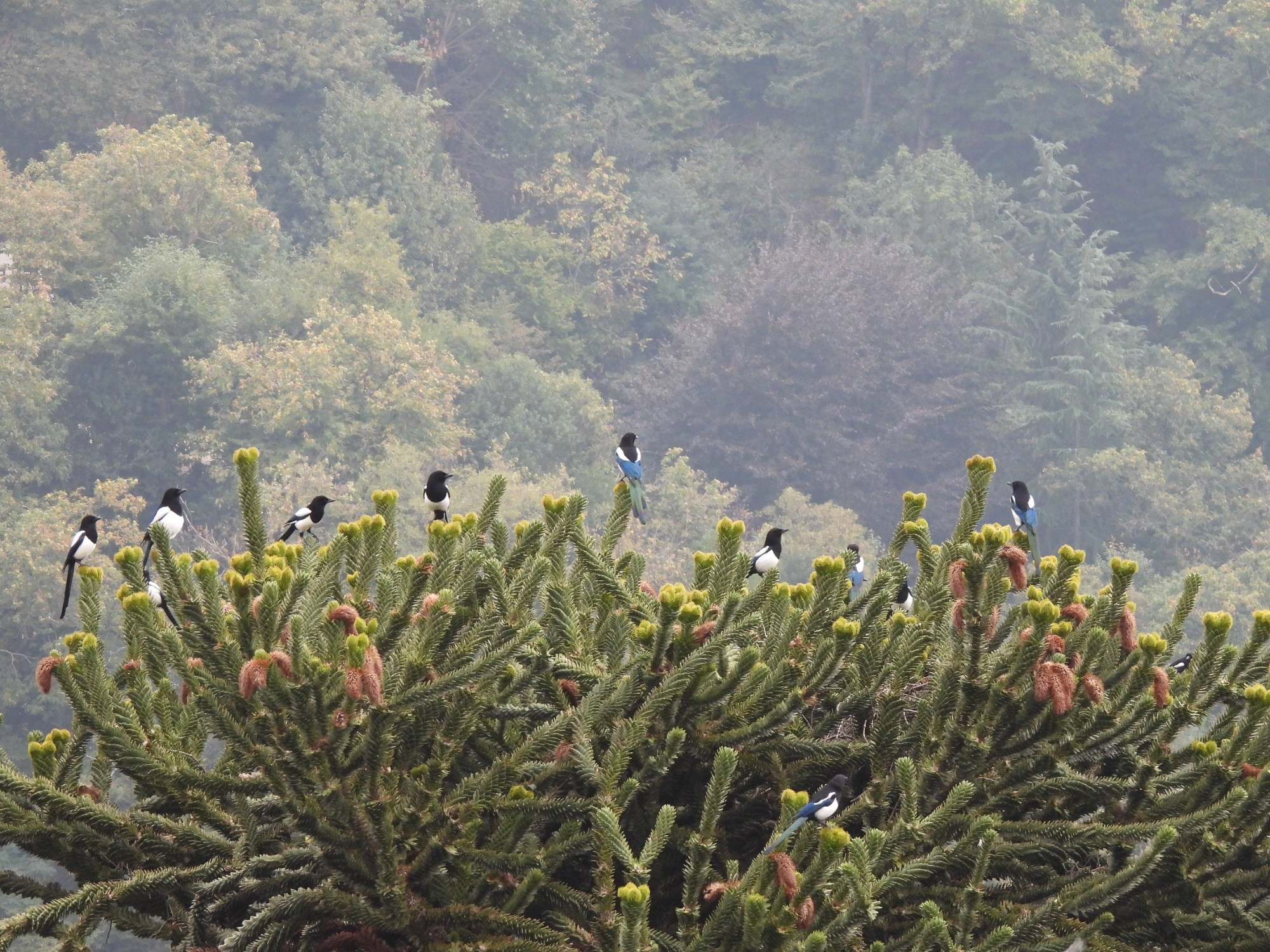 Eurasian magpies (Pica pica) loved this Araucaria-tree in the neighborhood of our house. I've never seen so much of them at one place.