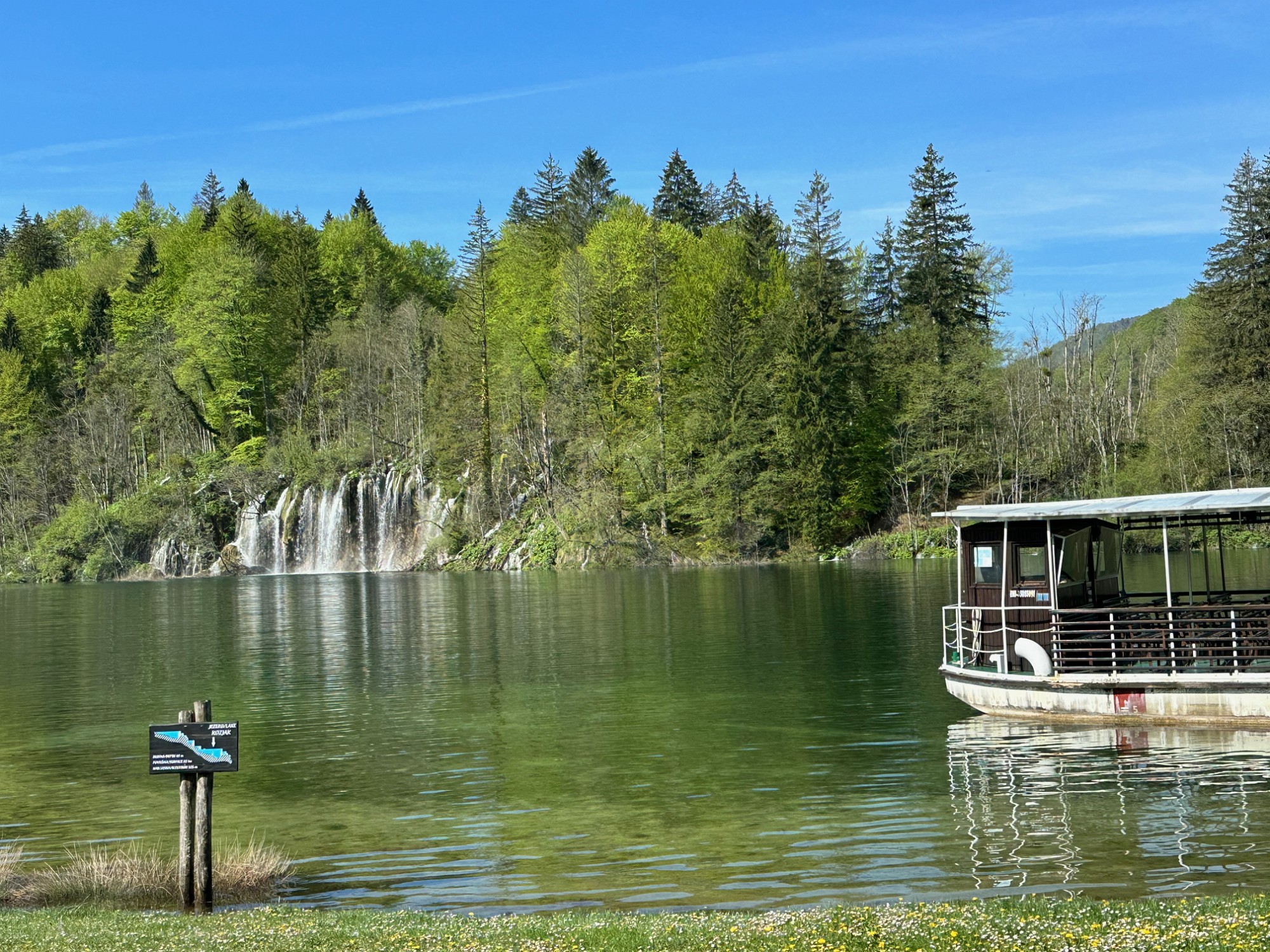 We started our journey in Croatia in Plitvice Lakes National Park, because it's one of the most spectacular landscapes in Europe. This photo shows the lake Kozjak and one of the low-noise and ecologically friendly electric boats, which are the sole transportation mean on the lakes.