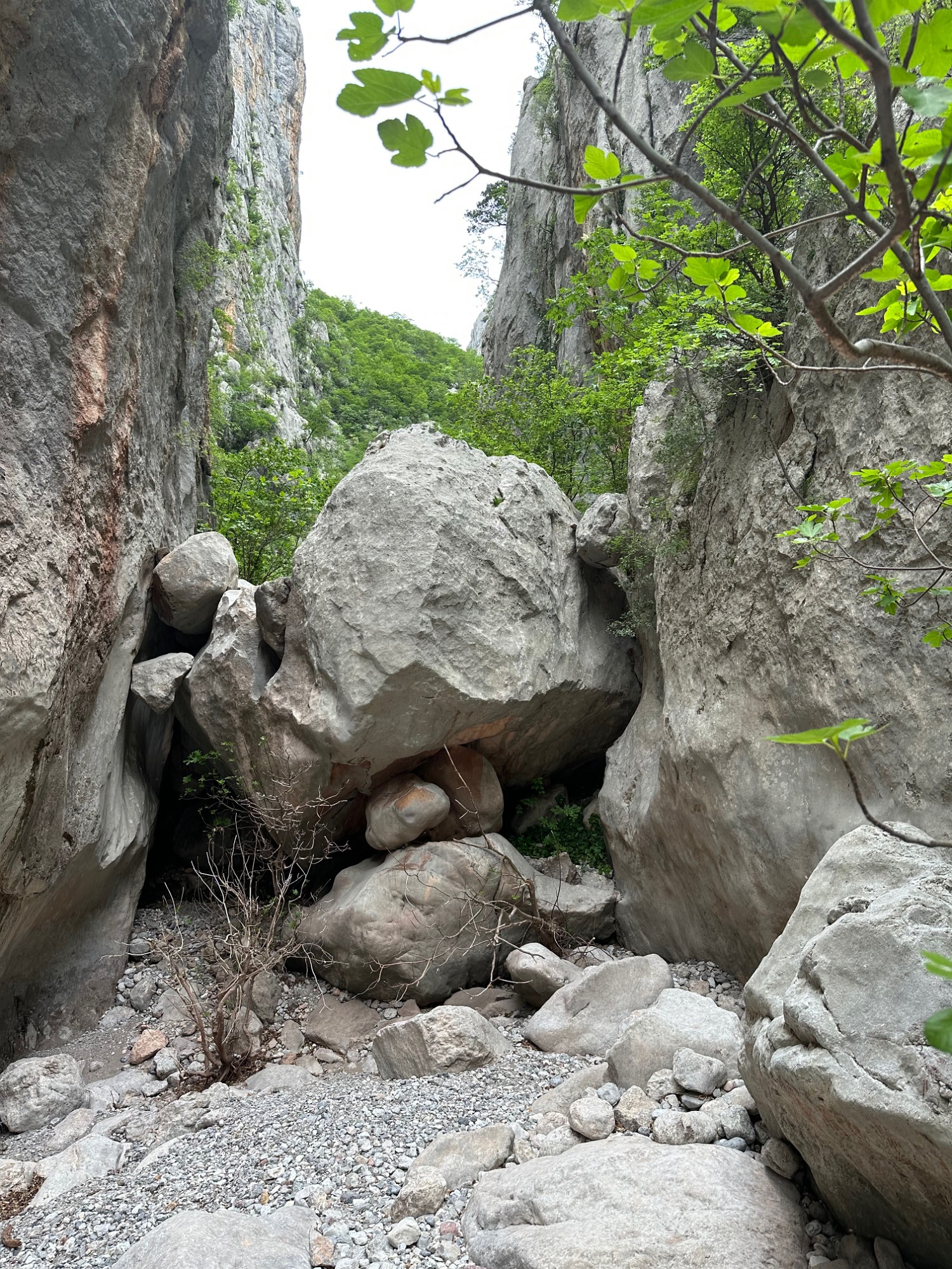 Some boulders in the gorge, like this at this photo, were not easy to climb. Fortunately, nowadays there is no water flowing through Mala Paklenica.