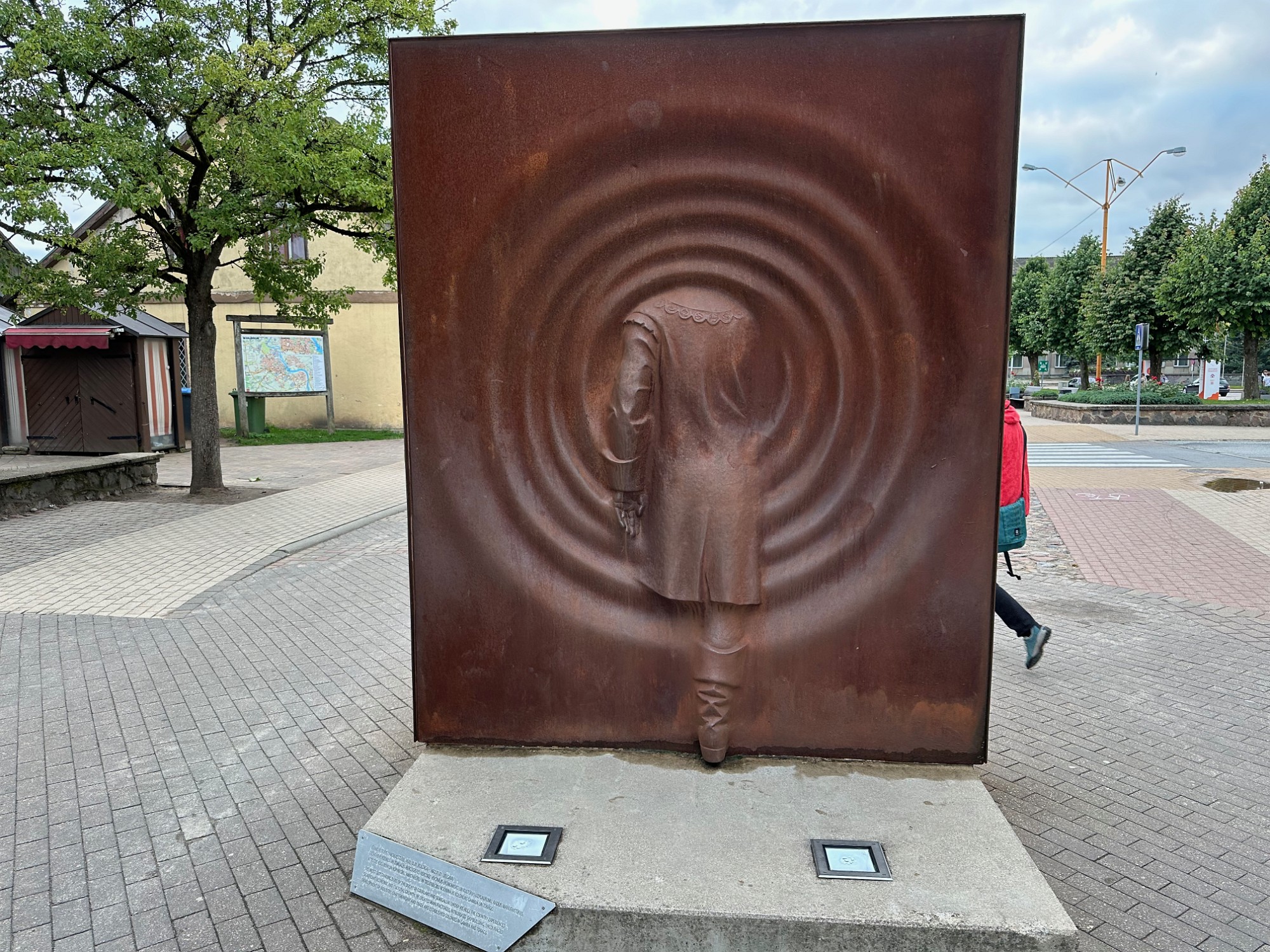 An interesting monument on the pedestrian street in Kuldīga. It looks like immersion into a wormhole...