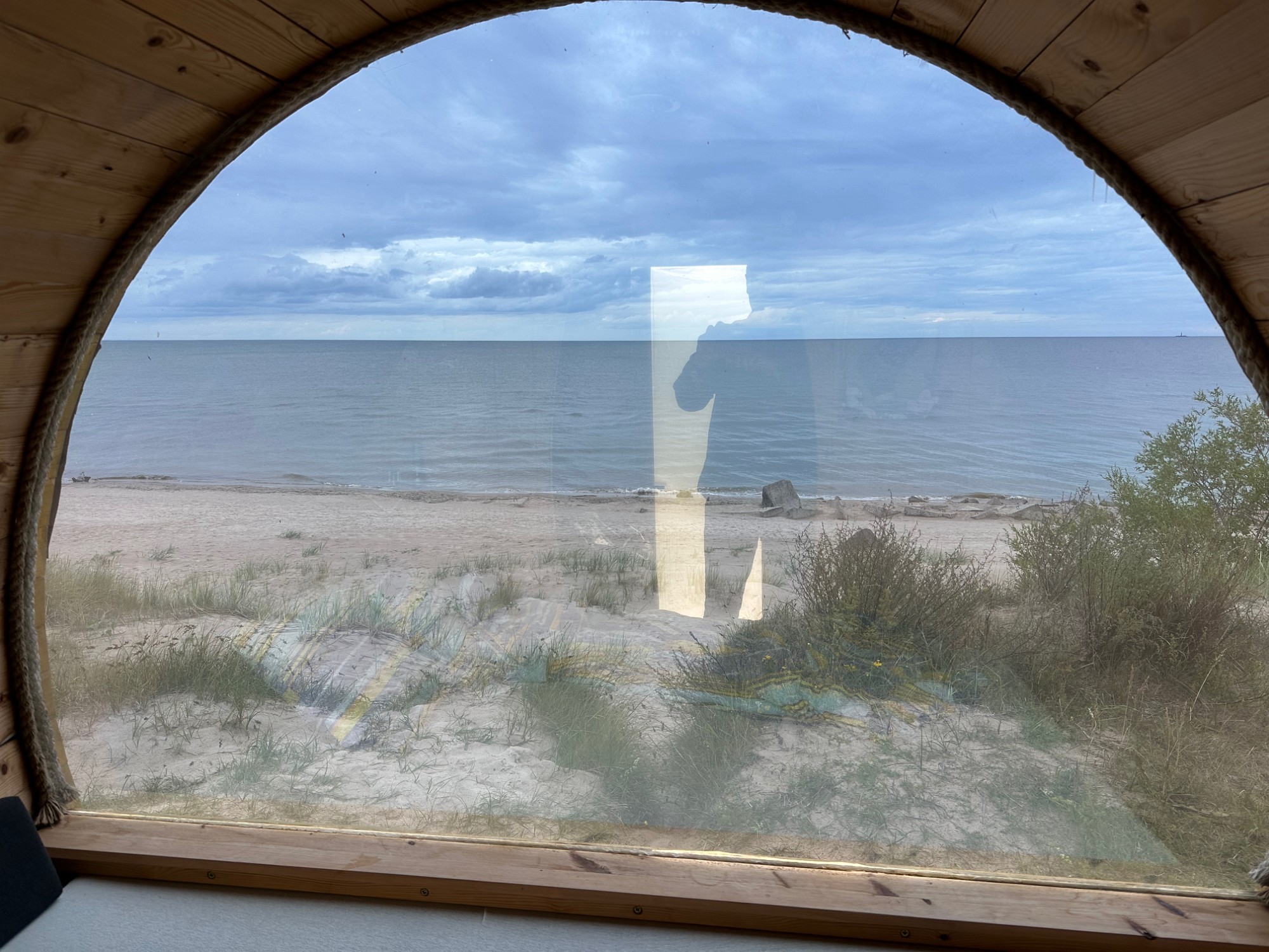 Our bed in the barrel-house was placed directly bevor big glass window. It was a great place to enjoy a romantic sunset over the sea lying in bed. Unfortunately, at the evening we stayed in this barrel-house there were no sunset visible because of the thick cloud cover.