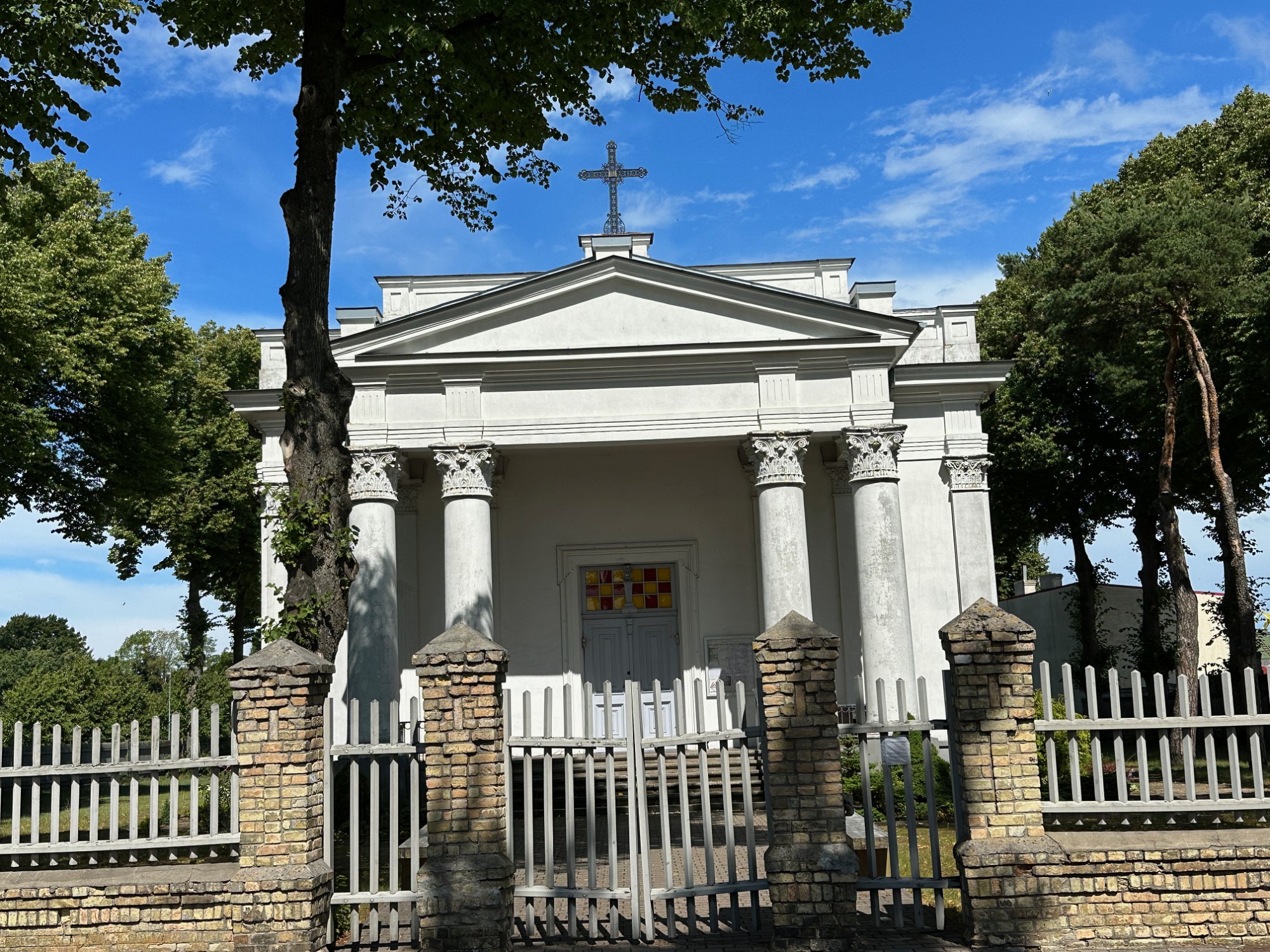 The snow-white Roman Catholic Church Ventspils Saint Cross was built in 1898.
