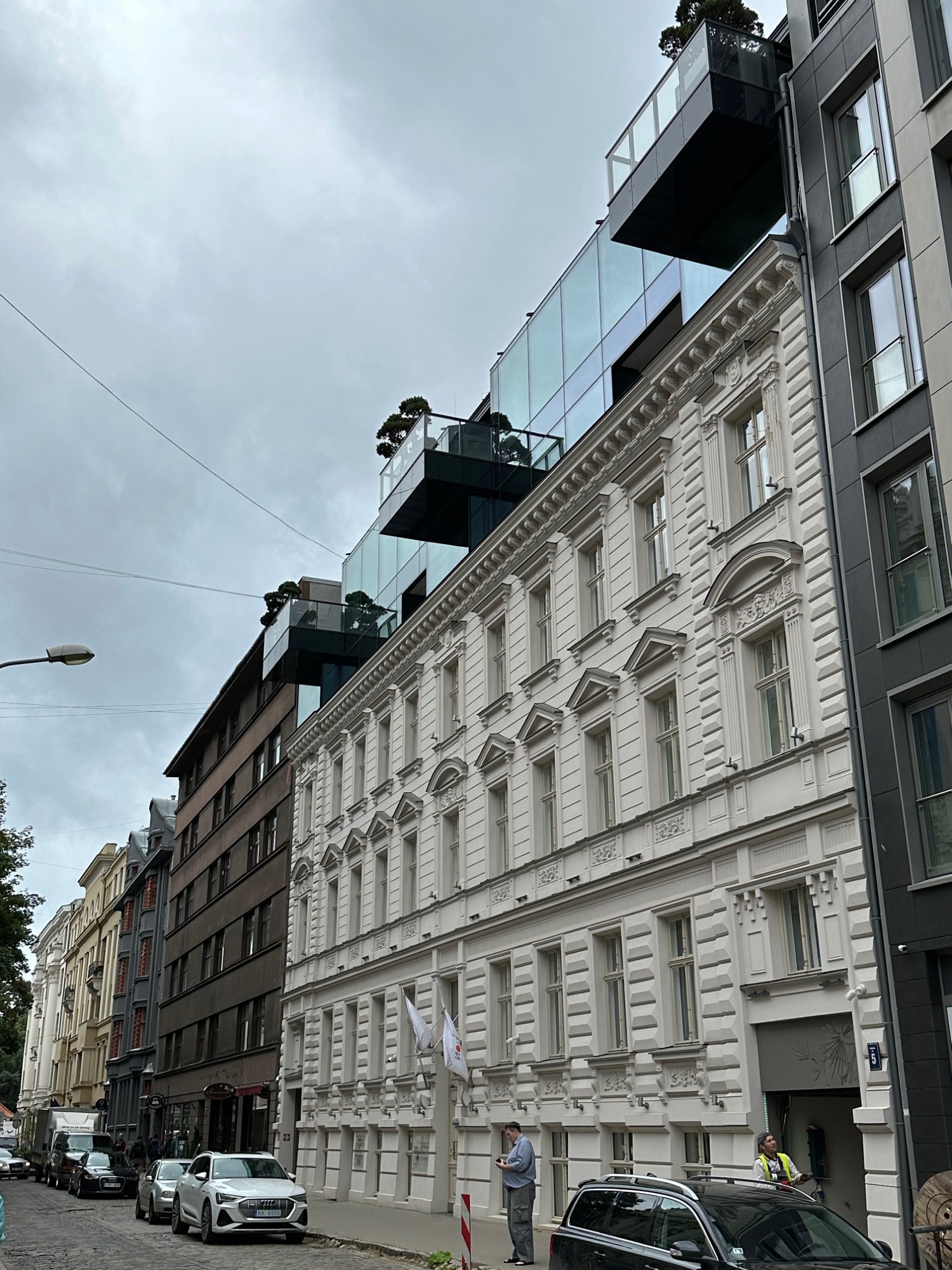 And modern architecture as extension of an Art Nouveau building.