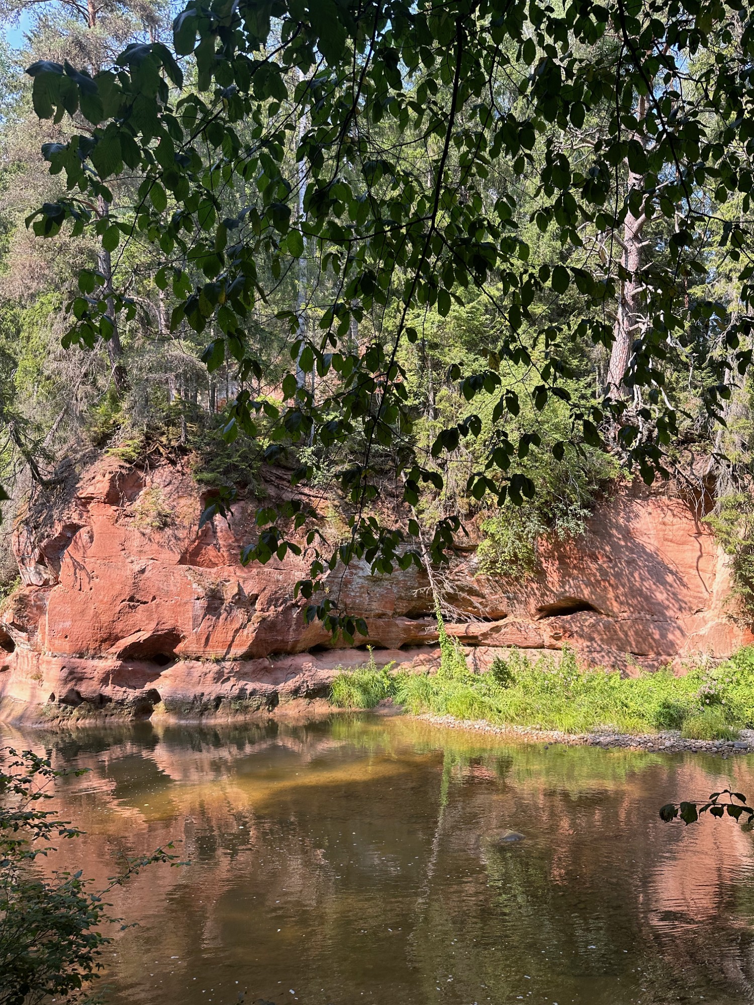 By hiking along the densely forested shores of the Amata river glimpses of the river and the red sandstone rocks could be caught again and again.