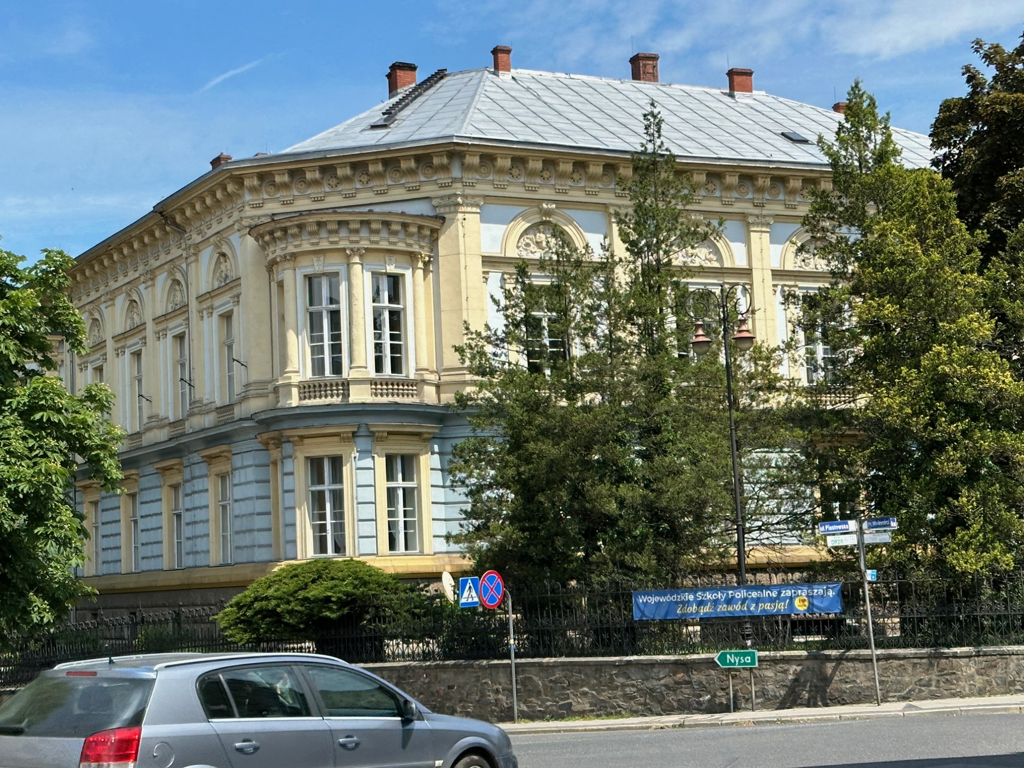 The medical school in Prudnik. My home town Głogówek belongs to the Prudnik county. The town Prudnik (German: Neustadt) is with more than 20.000 citizens the biggest town in this county.