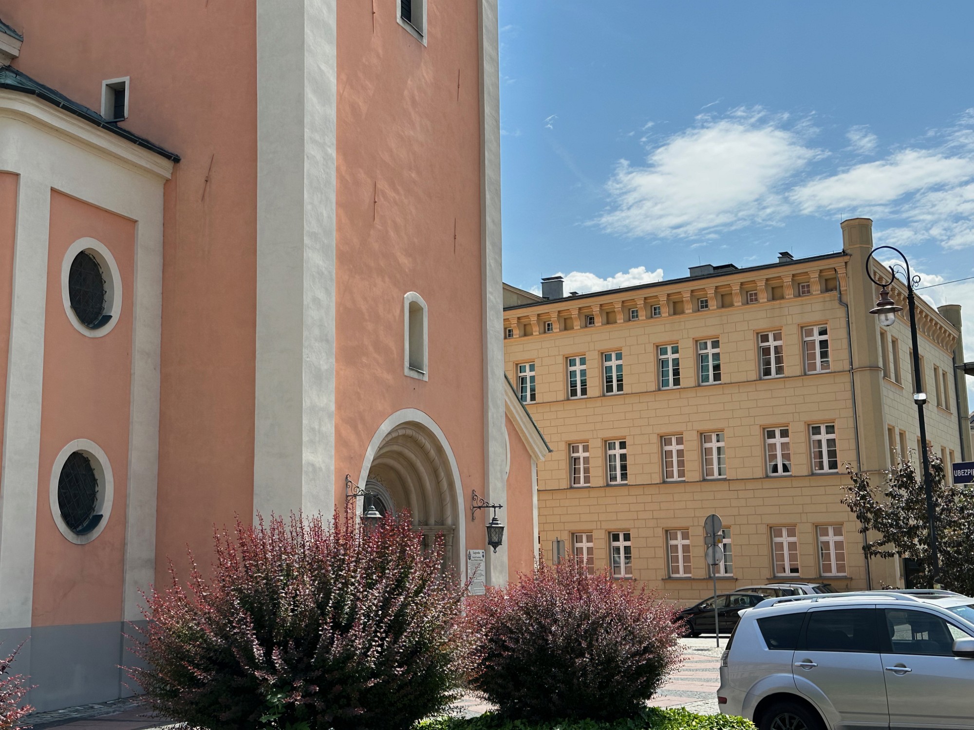 At the left is the baroque St. Michael's Church, at the right an administrative building.