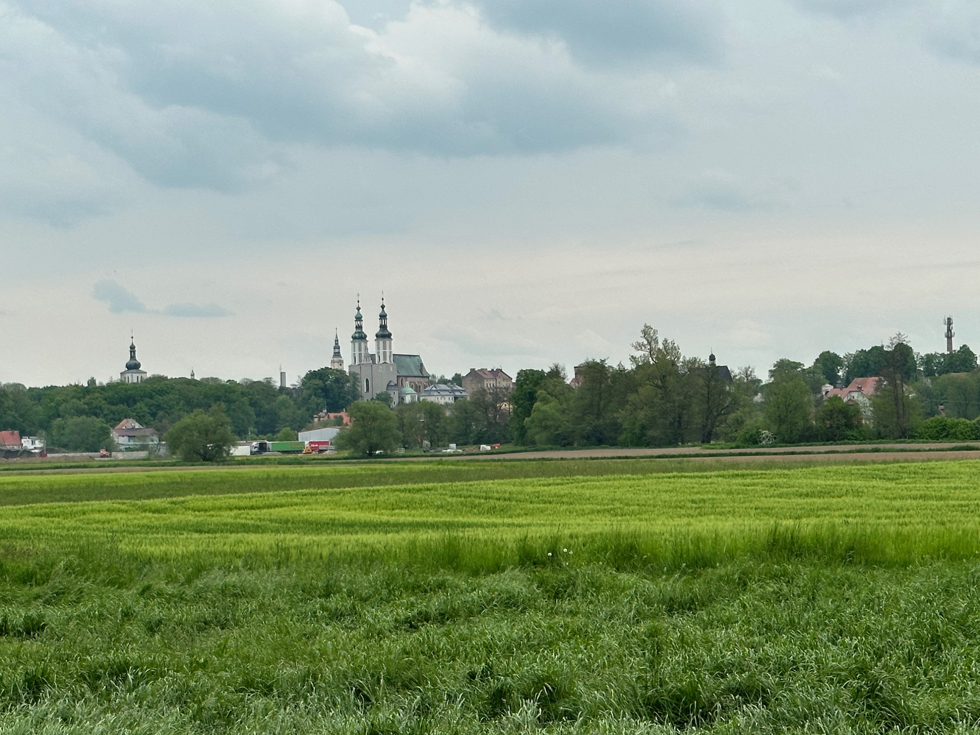A distant view of my home town Głogówek (German: Oberglogau), a small historic town in southern Poland. From right to left towers above the city: two towers of the parish church, the tower of the city hall and the tower of the monastic church. In Mai and June 2023 I had to drive many times to Głogówek to arrange all affairs associated with the death of my mother.