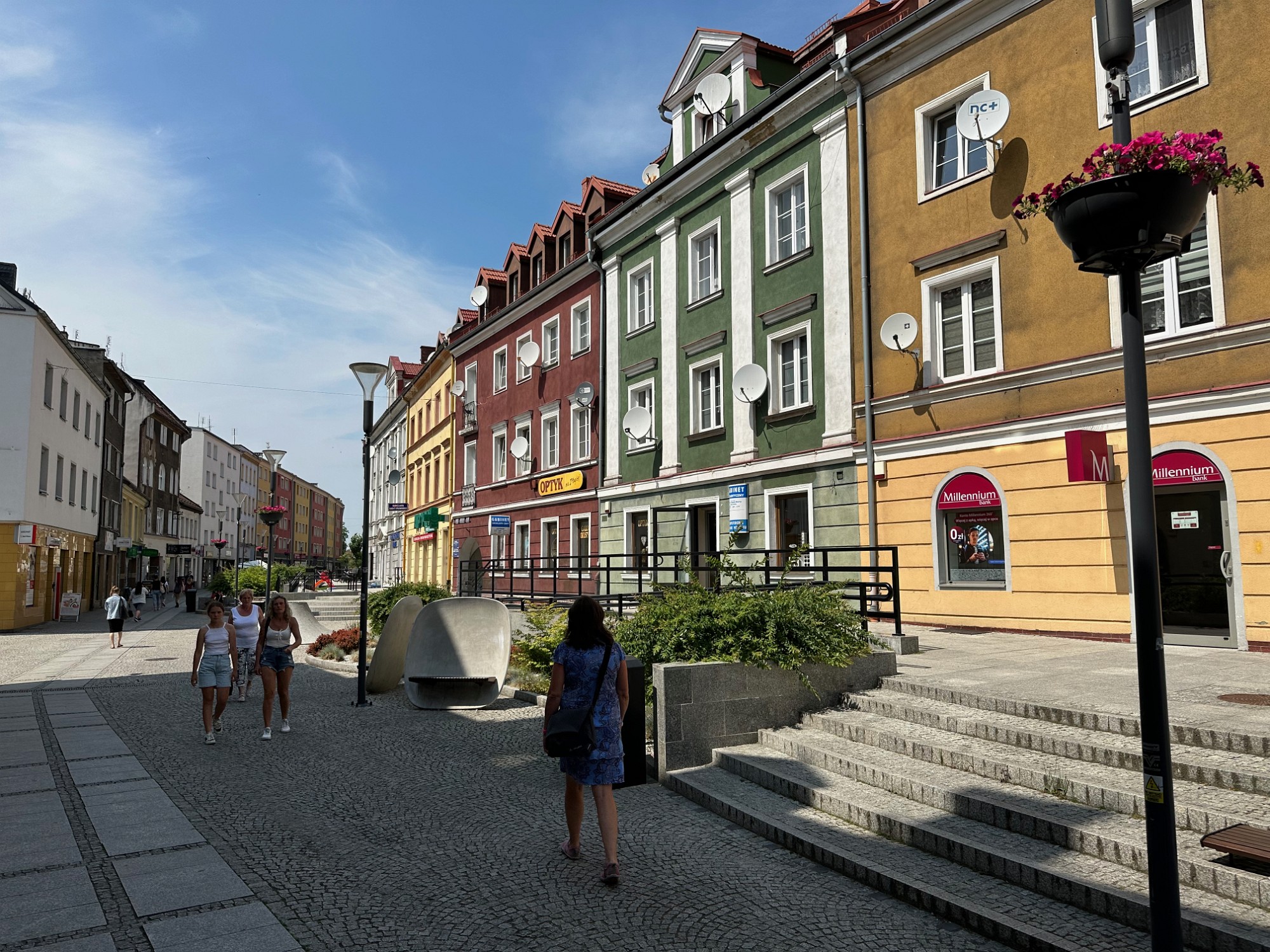 A street in old town of Racibórz (German: Ratibor). With Opole, Racibórz is one of the historic capitals of Upper Silesia, being the residence of the Dukes of Racibórz from 1172 to 1521.