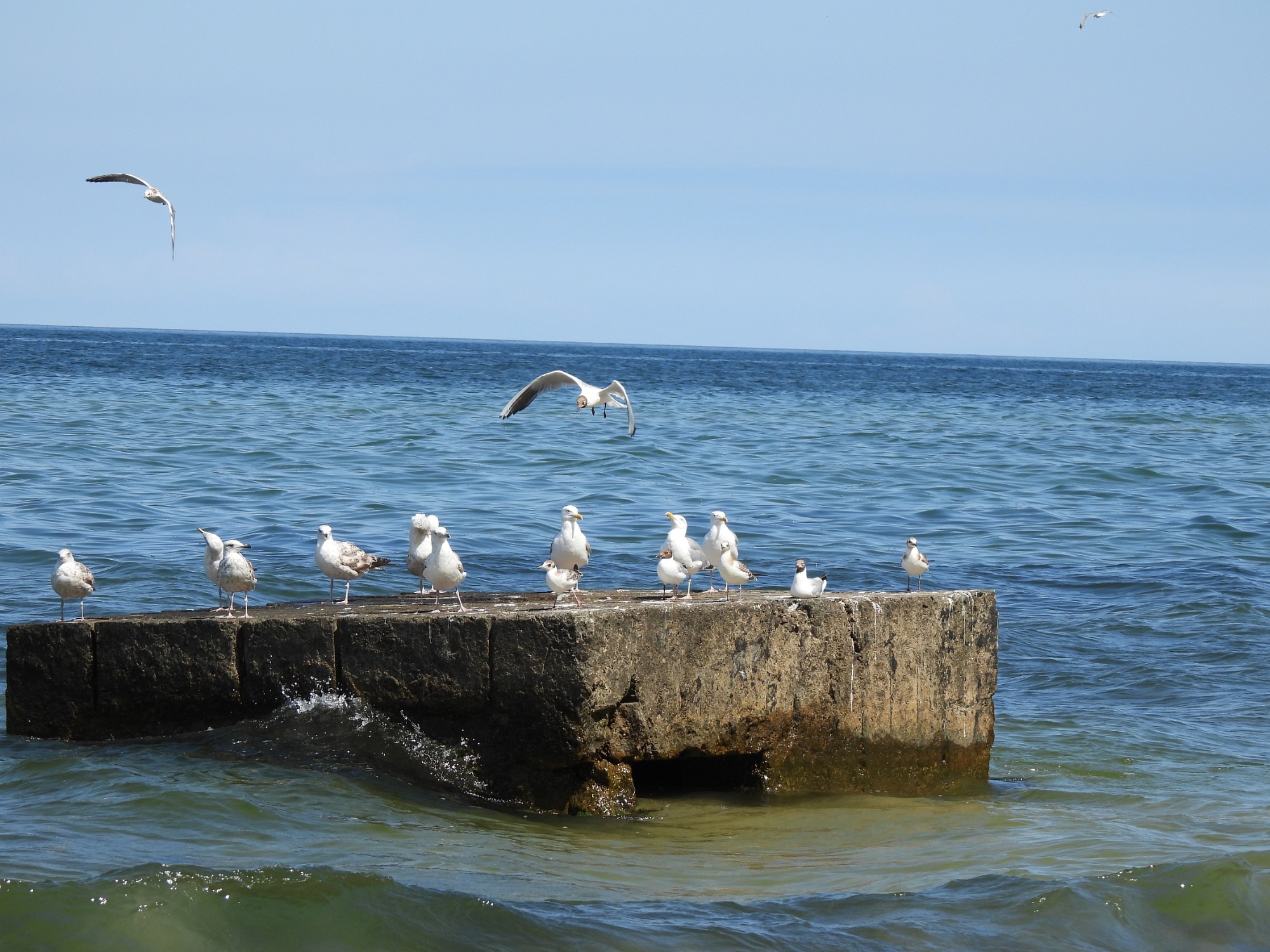 The black-headed gulls (Chroicocephalus ridibundus) and the European herring gulls (Larus argentatus) likes this concrete remnants of a fortification and use it as resting place.