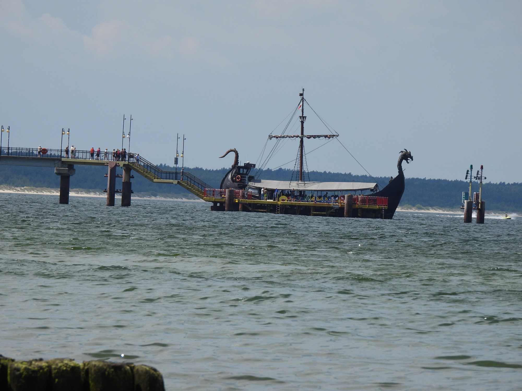 We didn't like Międzyzdroje, because it was infested with tourists. And it was offering strange, touristic attractions, like a cruise with this Viking vessel at the photo.